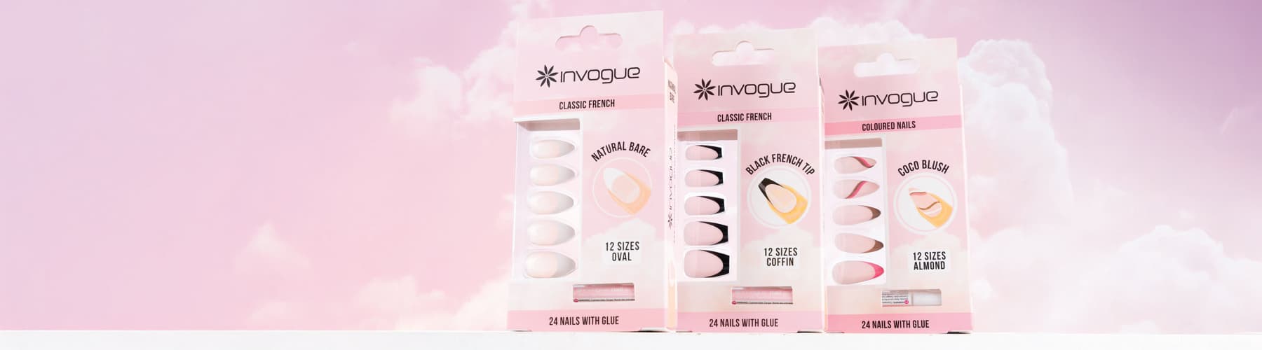 The Invogue false nails collection has a variety of shapes and colours. All Invogue false nails come with an easy to apply, 3 second glue. Shop the full range now.