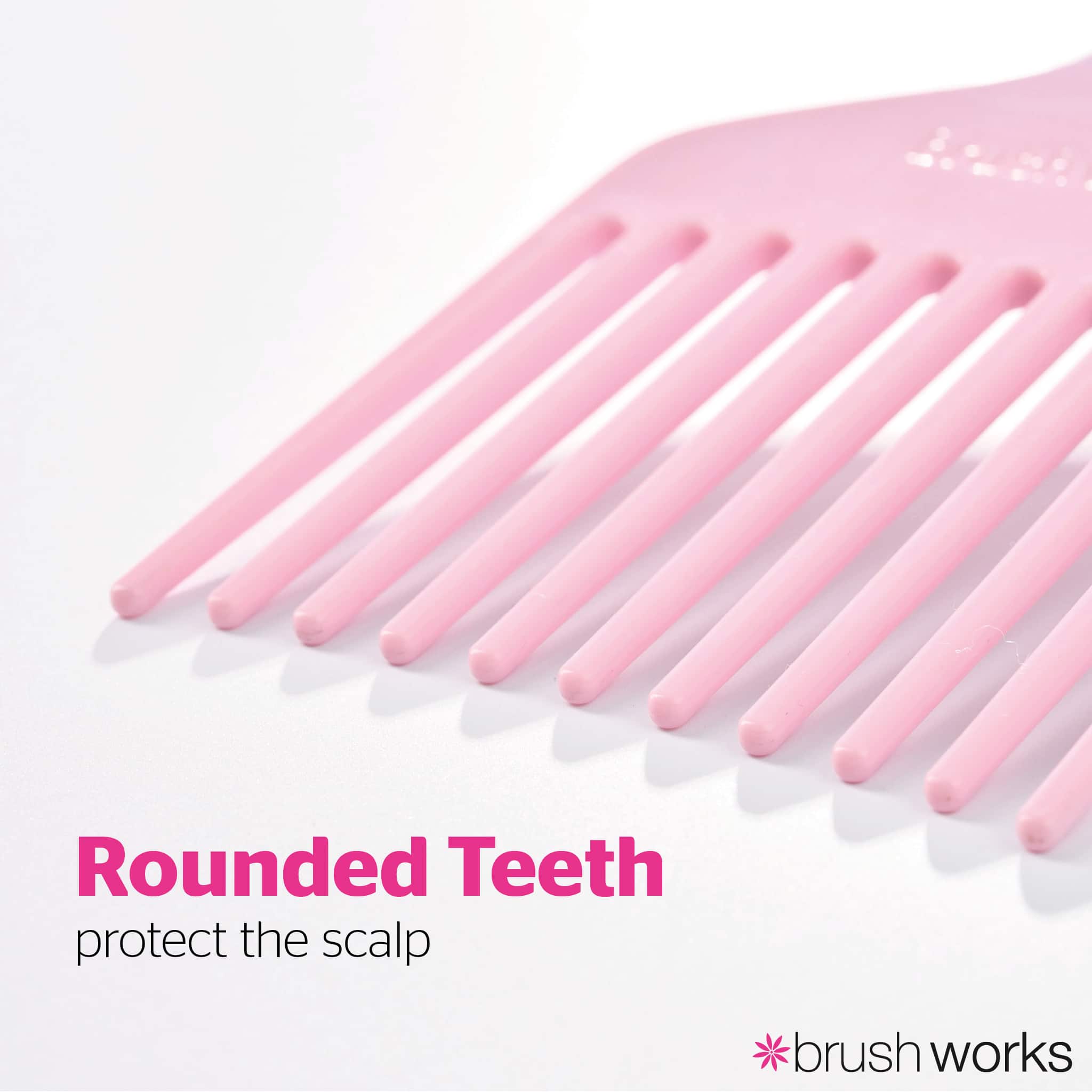 - Rounded, sturdy teeth glide through hair protecting the scalp